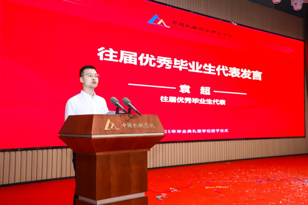 往屆優秀畢業生代表袁超分享留院工作以來的科研經歷與成長,鼓勵學弟學妹們“以‘敢為人先’為刃,在工業母機、工業軟件的賽道上破浪前行;以‘開拓創新’為炬,為中國制造業的高質量發展點燃燎原星火。”