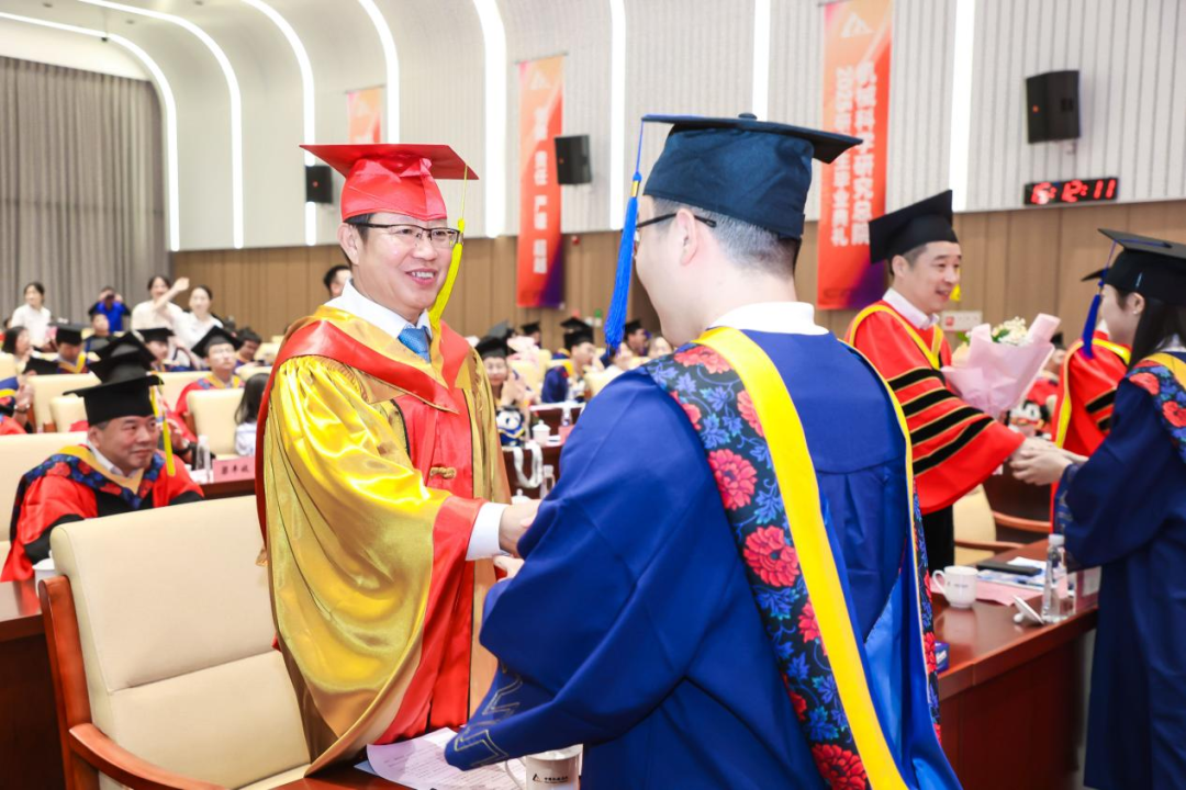 李愛國宣讀了《機械科學研究總院2025屆畢業生學位授予決定》,王德成為每位畢業生撥穗正冠并頒發學位證書。